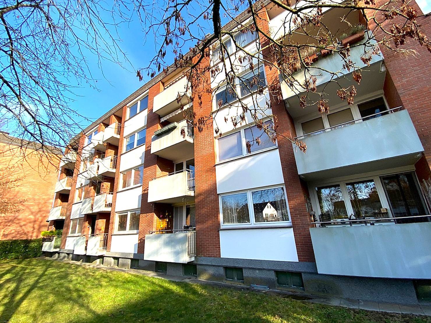 Es handelt sich um eine gepflegte Wohnanlage bestehend aus sechs viergeschossigen Gebäuden auf einem großzügigen Grundstück mit jeweils 16 bzw. 12 Eigentumswohnungen je Hauseingang.